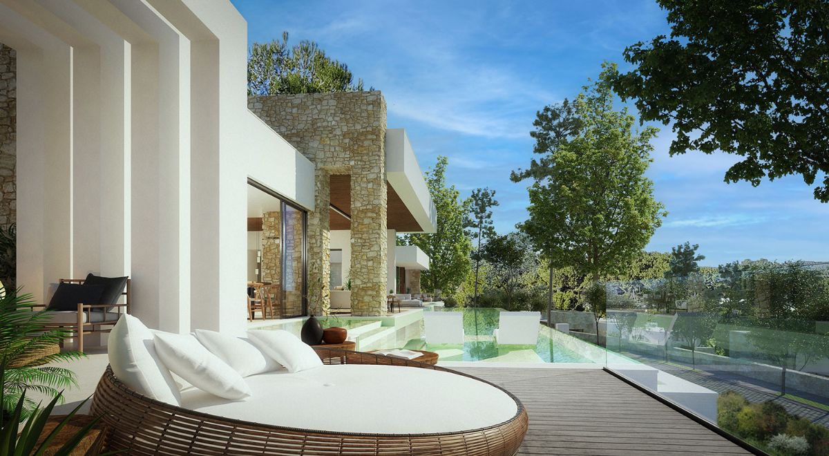 Cada una de las propiedades se levantan en parcelas de al menos 1500 metros cuadrados con una absoluta privacidad con respecto a las parcelas colindantes. La densidad de edificación ha sido reducida al mínimo con la idea de que cada una de las villas coexista de manera mágica con un entorno arbolado y plenamente natural en este hermoso y privilegiado entorno.